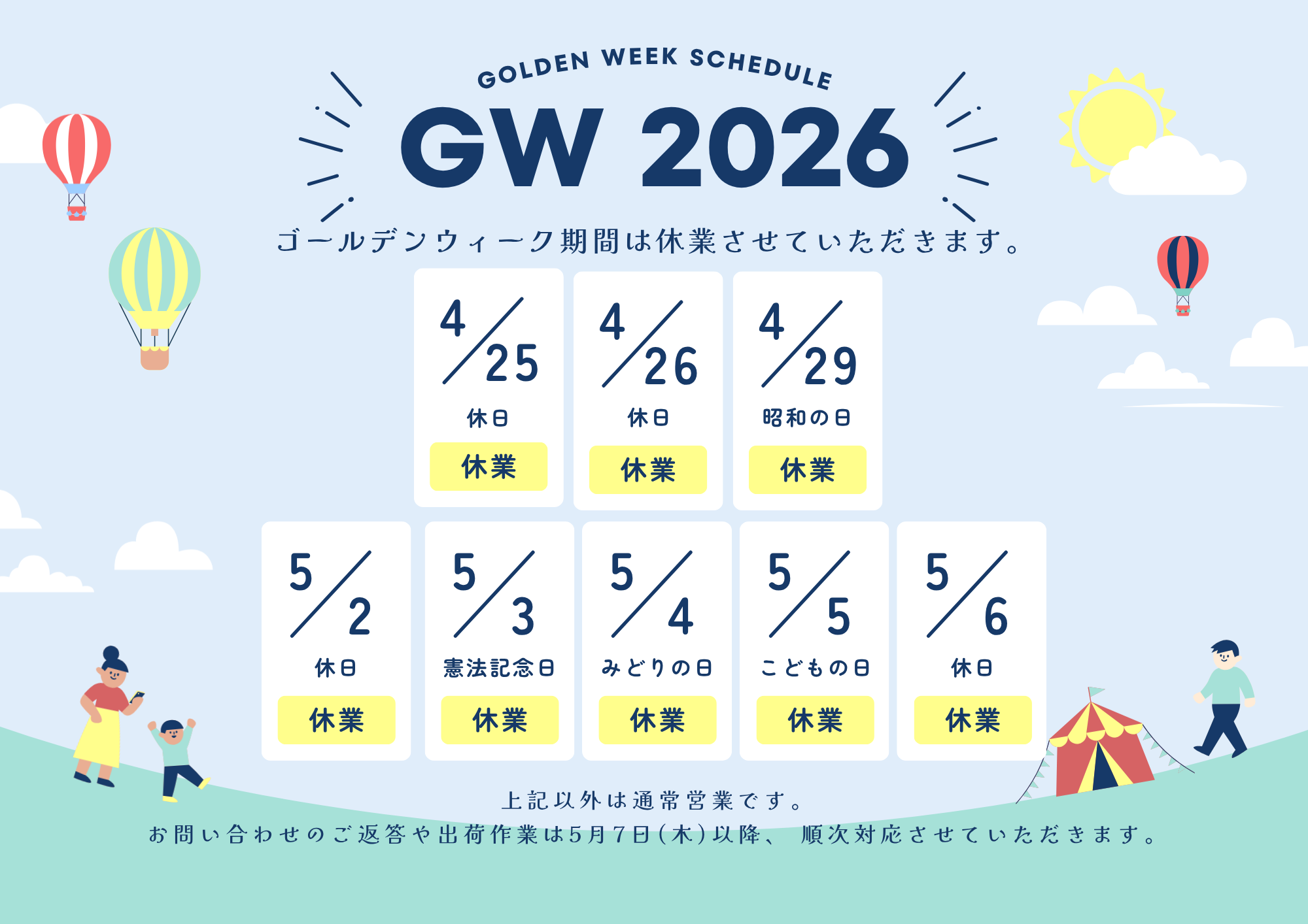 お問い合わせのご返答や出荷作業は5月7日(木)以降、 順次対応させていただきます。